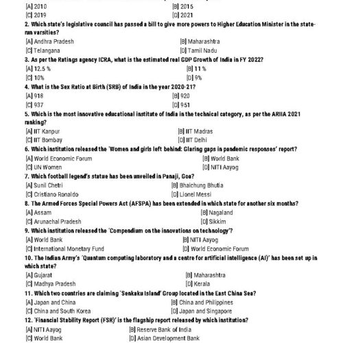 - Forum Ias 10PM Current Affairs Quiz Compiltions English Medium