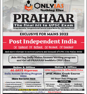 Only IAS Prahaar Exclusive For Mains Post Independence India English Medium 2022