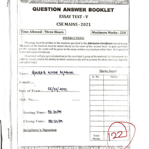 Lukmaan IAS Essay Topper’s Copy 2021 English Medium By Gourab Kumar Agarwal (AIR-86)