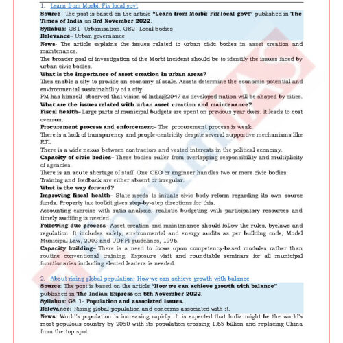 Forum IAS 9pm Compilation For The Month Of November 2022 English Medium