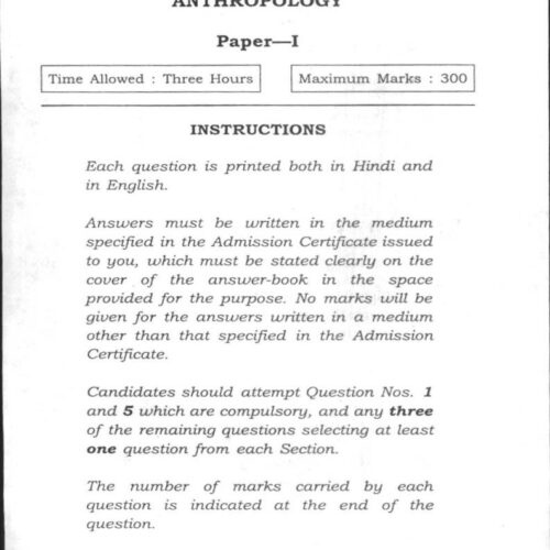 UPSC Mains Optional Anthropology Previous Years Questions Papers Bilingual 2009-24