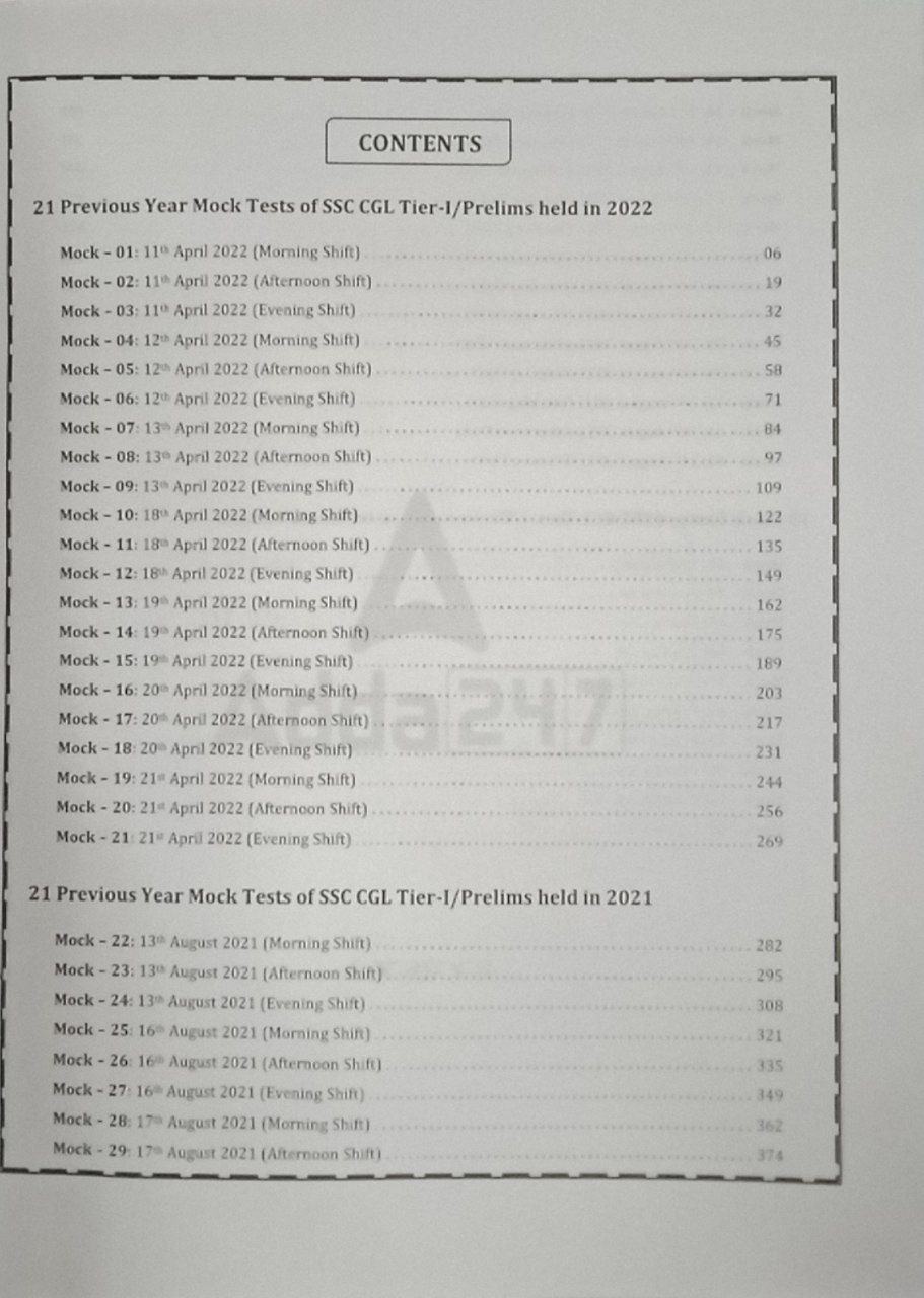 Previous Year Mock Tests Of SSC CGL Tier-I/ Prelims Held in 2021