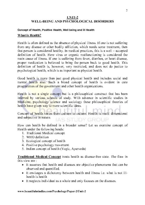 Unit -1 Well Being And Psychological Disorders