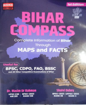 Bihar compass 1st edition by Dr.wasim ur rahman and shaivi dubey complete information of bihar through Maps and Facts useful for BPSC,CDPO,FAO,BSSC and all other competitive examinations of bihar