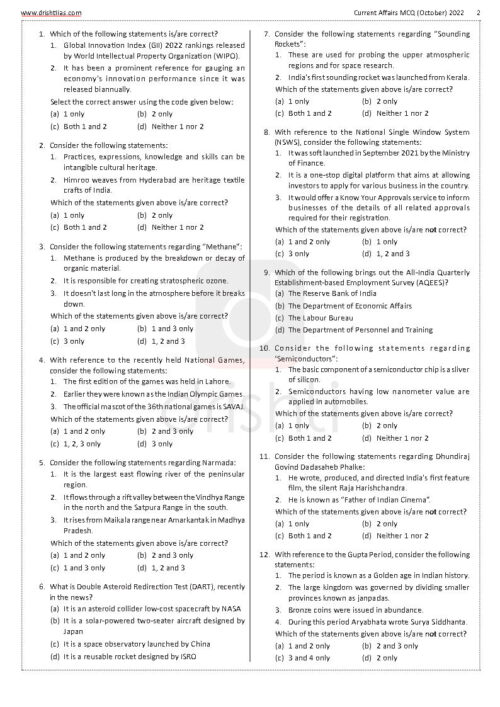 Drishti IAS Current Affairs MCQ Quiz Consolidation October Part I & II 2022 English Medium