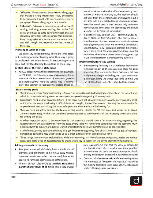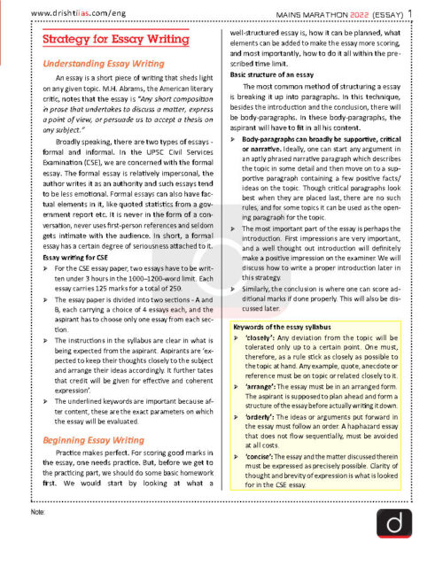 Drishti IAS Mains Marathon Essay English Medium 2022