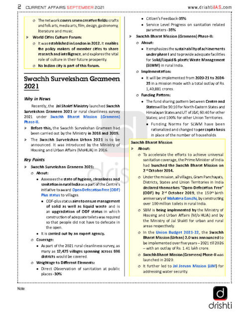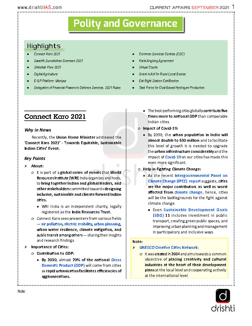 Drishti IAS Monthly Current Affairs Consolidation September Part (I) 2021 English Medium