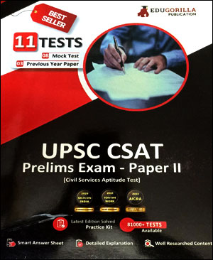 Edu Gorilla Publication UPSC CSAT Prelim Exam Paper-II With 8 Mock Tests & 3 Previous Year Papers Preparation Book English Medium