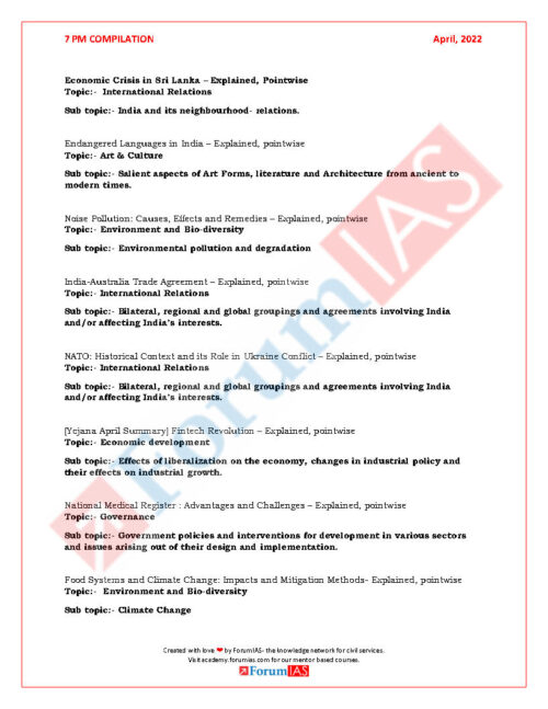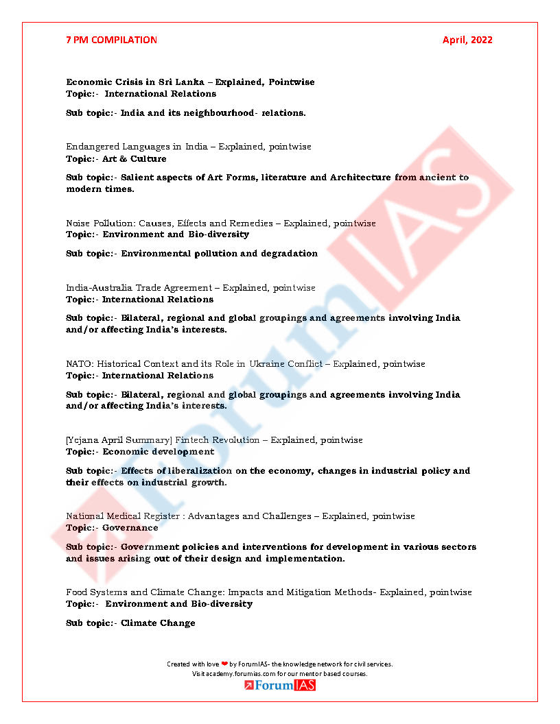 Forum Ias 7PM Compilation for The Month Of April 2022 English Medium