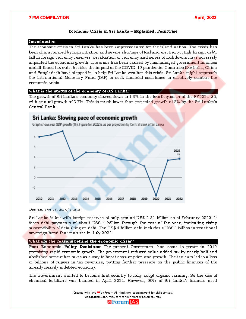 Economic Crisis in Sri Lanka – Explained, Pointwise
