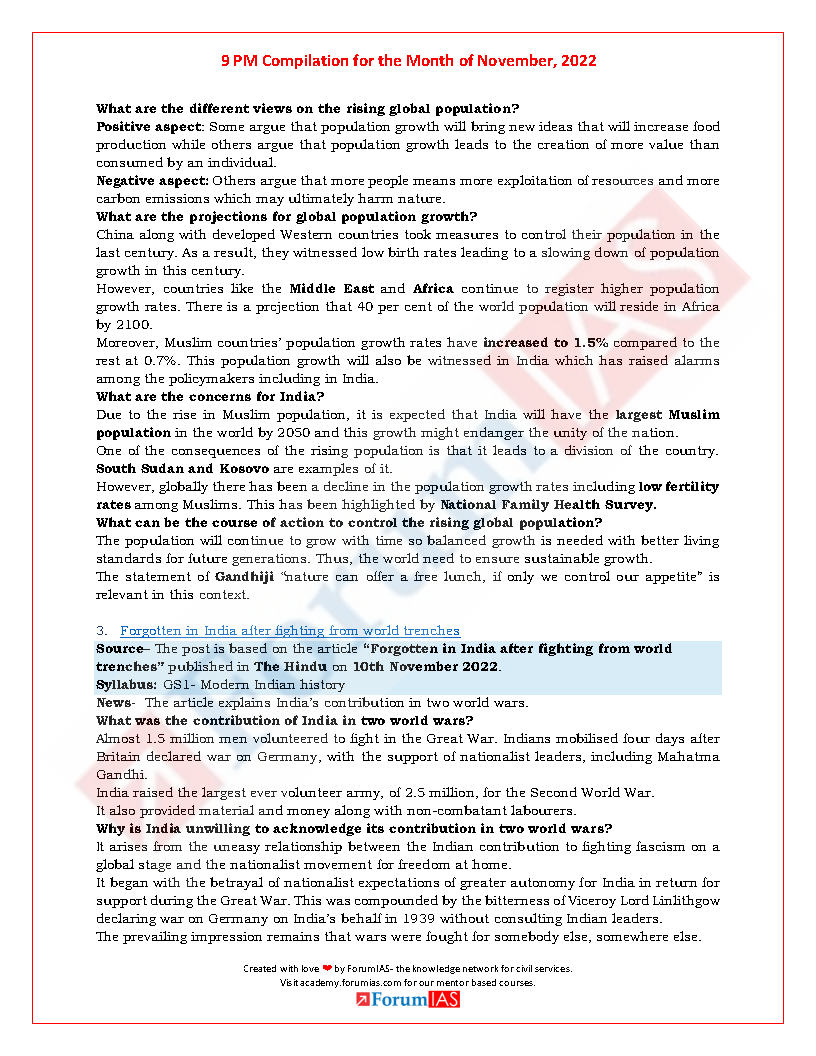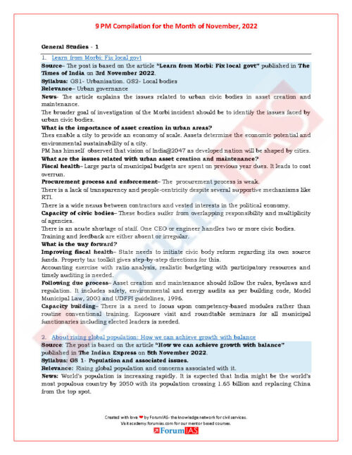 Forum IAS 9pm Compilation For The Month Of November 2022 English Medium
