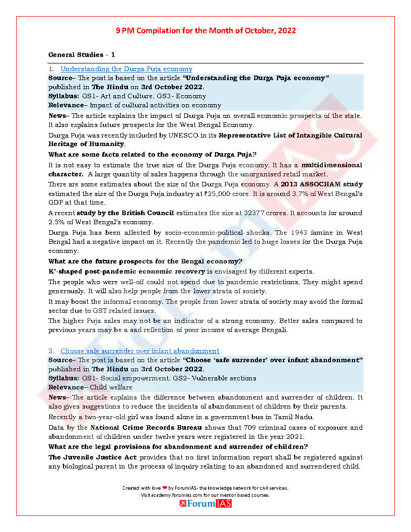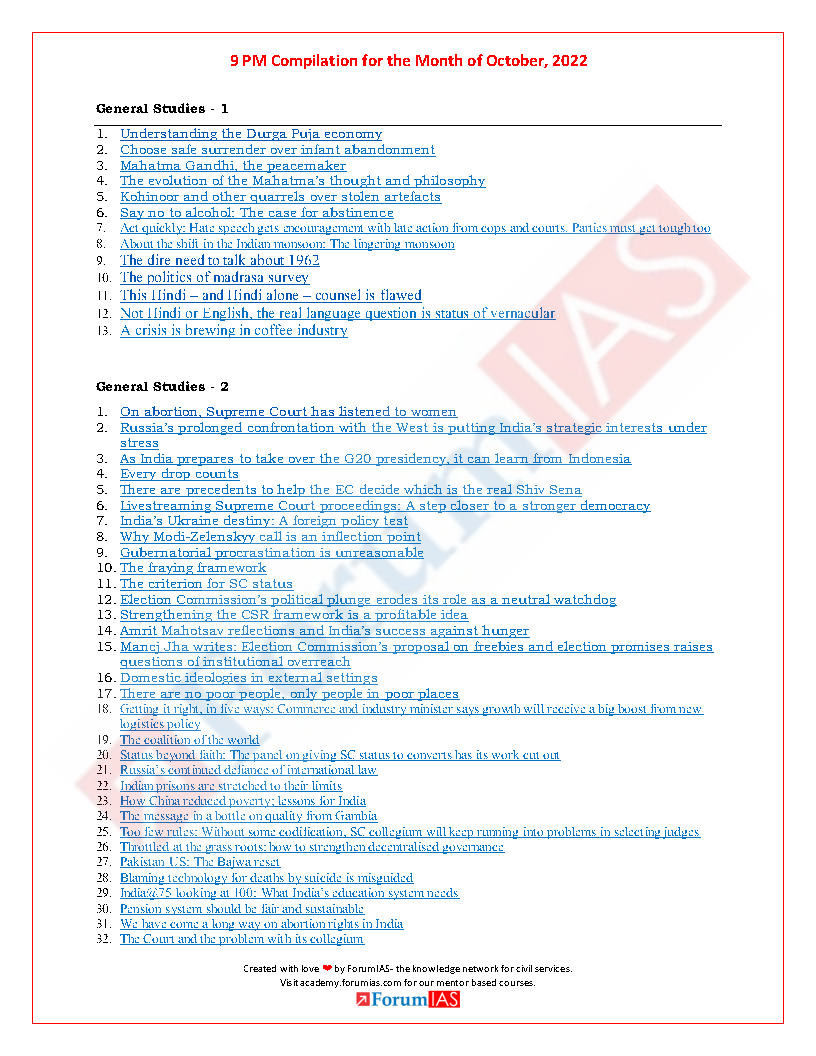 Tags: 9 PM, 9pm Compilation October 2022, Compilation For The Month Of October, Forum Ias, Forum Ias 9PM, Forum Ias English Medium, IAS Exam Study Material, Ias Notes, UPSC, Upsc Printed Notes, UPSC Study Material