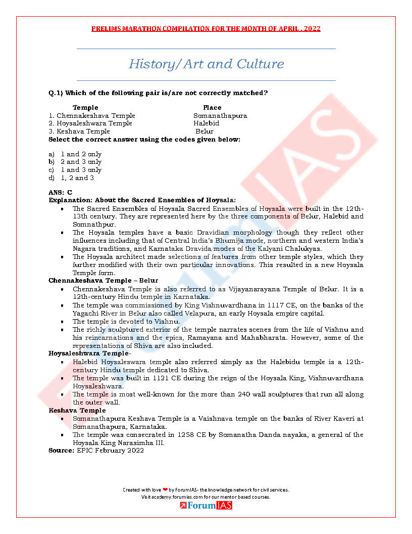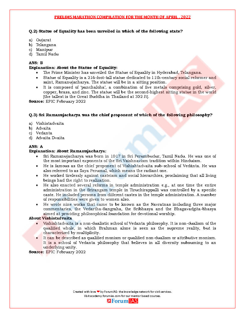 Forum IAS Compilation For The Month Of April 2022 Prelims Marathon English Medium Printed Notes