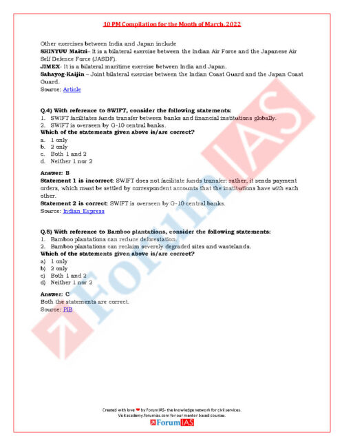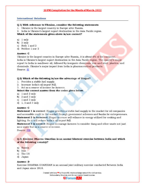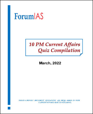 Forum Ias monthly 10 PM Current Affair Quiz Compilation March 2022 Printed Notes English Medium