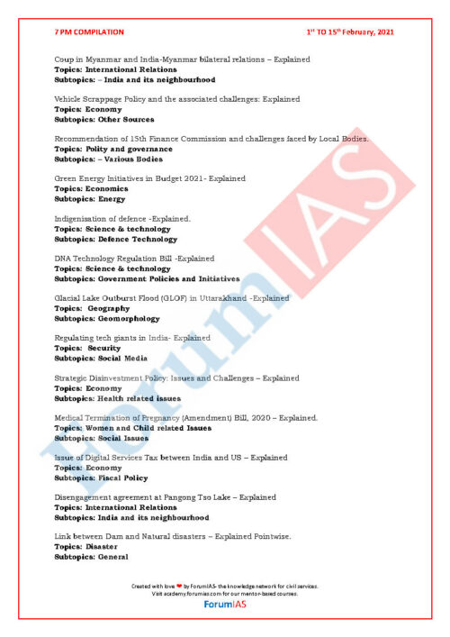 Forum Ias Monthly 7PM Compilation Editorial Feburary 2021 Printed Notes English Medium