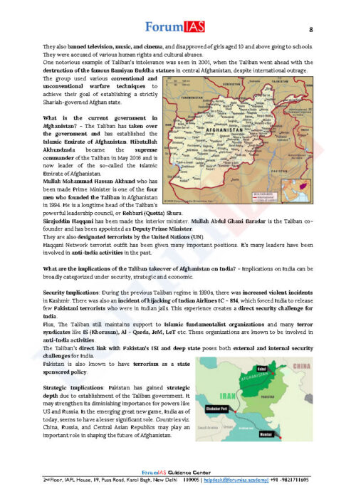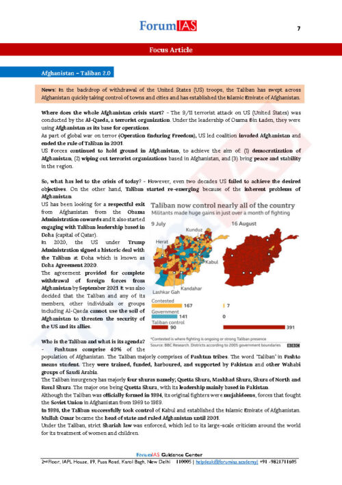 Forum IAS Monthly Prelims Epic Current Affairs August 2021 English Medium Notes