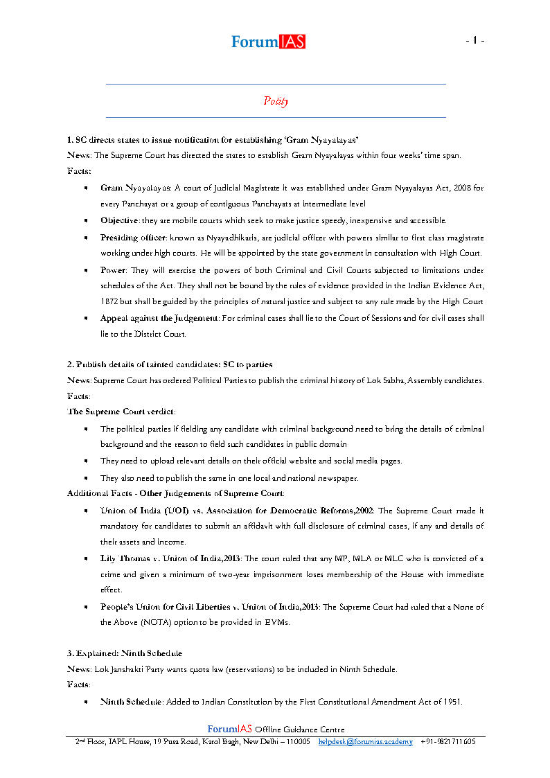 Forum Ias Monthly Prelims Factly Current Affairs Feburary 2020 Printed Notes