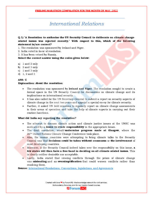 Forum Ias Prelims Marathon May 2022 English Medium Printed Notes