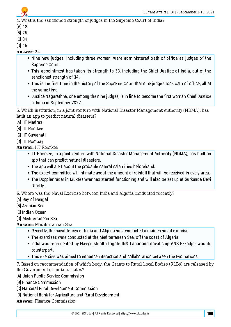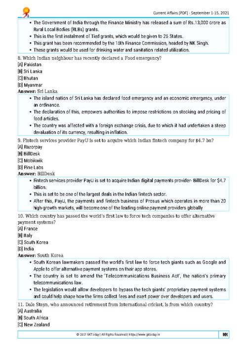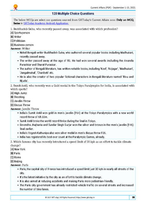 GK Today MCQ Compilation September 2021 Printed Notes English Medium