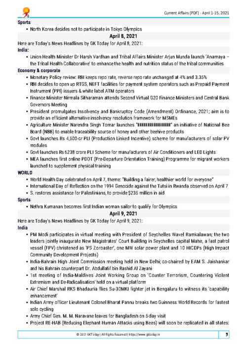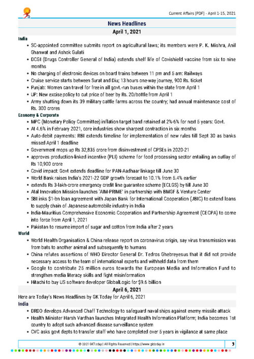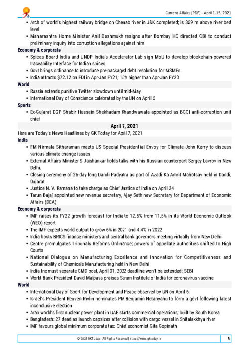 GK Today Monthly Current Affair April 2021 Printed Notes English Medium