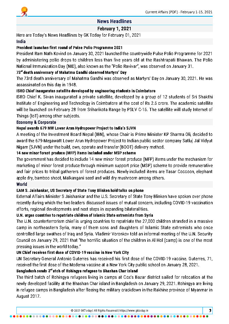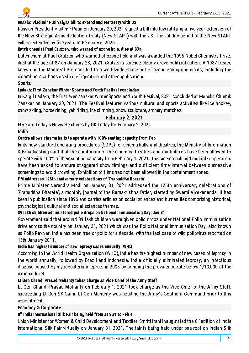 GK Today Monthly Current Affair Feburary 2021 Printed Notes English Medium