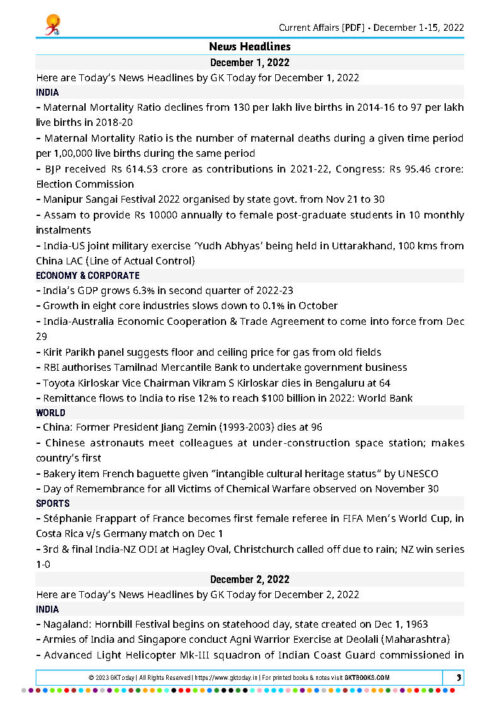 Tags: Current Affairs December, Current Affairs English Medium, GK today, GK Today Current Affairs, GK Today Monthly Current Affairs December 2022, Monthly Current Affairs December 2022, UPSC, Upsc Printed Notes, UPSC Study Material