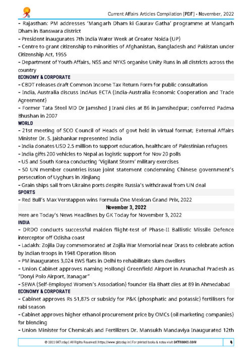 Tags: Current Affairs English Medium, Current Affairs November, GK Today Current Affairs, GK Today Monthly Current Affairs November 2022, Monthly Current Affairs November 2022, UPSC, Upsc Printed Notes, UPSC Study Material