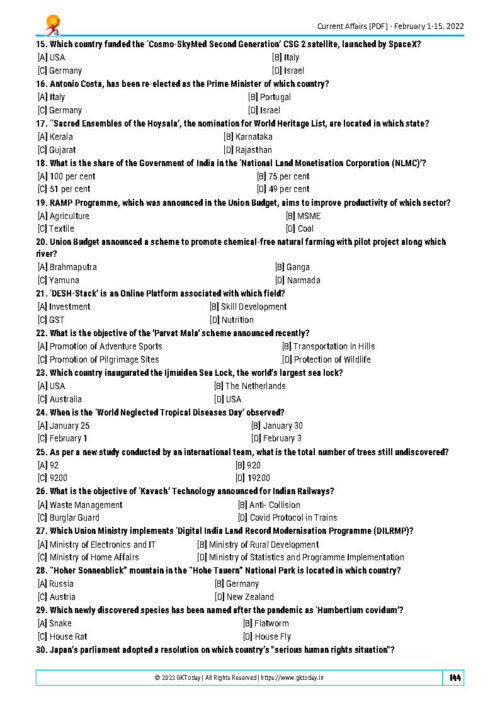 GK Today Monthly Magazine Current Affairs MCQ February 2022 English Medium