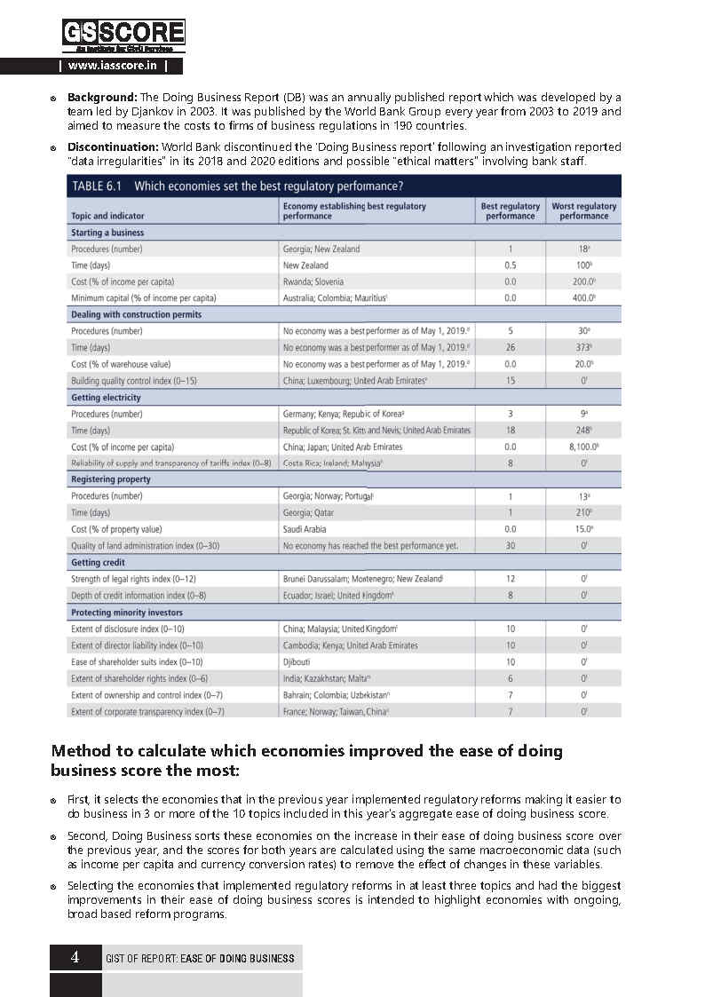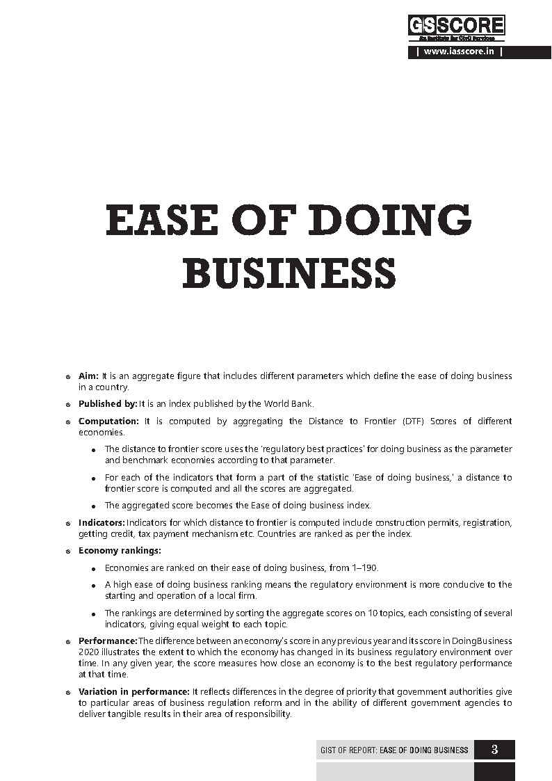 GS Score Gist of Important Report Ease of Doing Business By World Bank Printed Notes 2022 English Medium