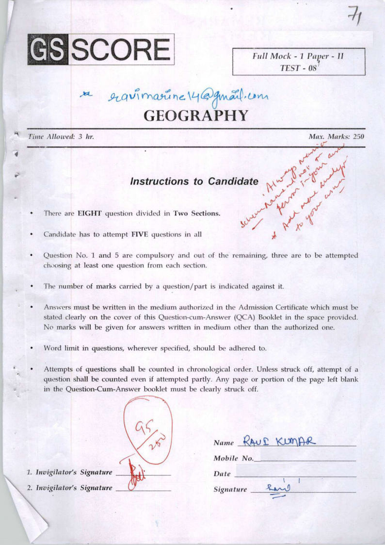 GS Score Ias Geography Topper’s Copy 2020 English Medium