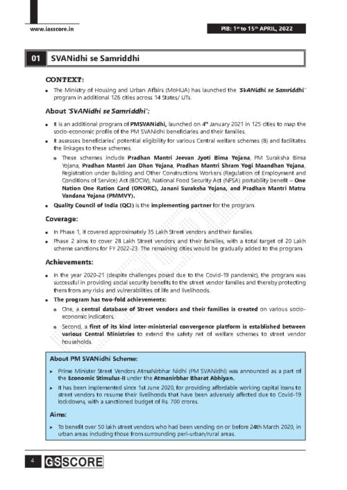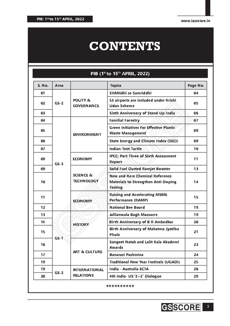 GS Score Ias Monthly PIB Magazine April 2022 English Medium