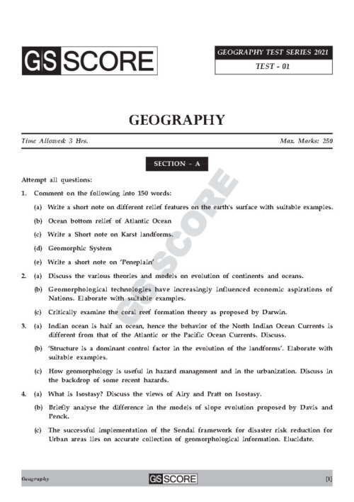 GS Score Ias Optional Geography Test Series 01 to 05 English Medium 2021 By Prince Mishra