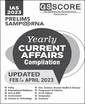 GS Score IAS Prelims Sampoorna Yearly Current Affairs Compilation Updated Feb To April 2023 English Medium B/W Printout