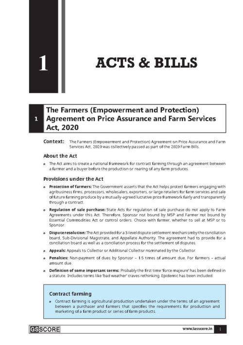 GS Score yearly Compilation Prelims Sampoorna Current Affair Acts & Bills 2021 English Medium Printed Notes