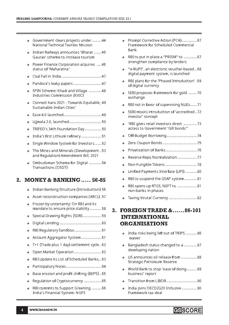 GS Score Yearly Compilation Prelims Sampoorna Current Affairs Economy Jan 2021-Feb 2022 Printed Notes English Medium