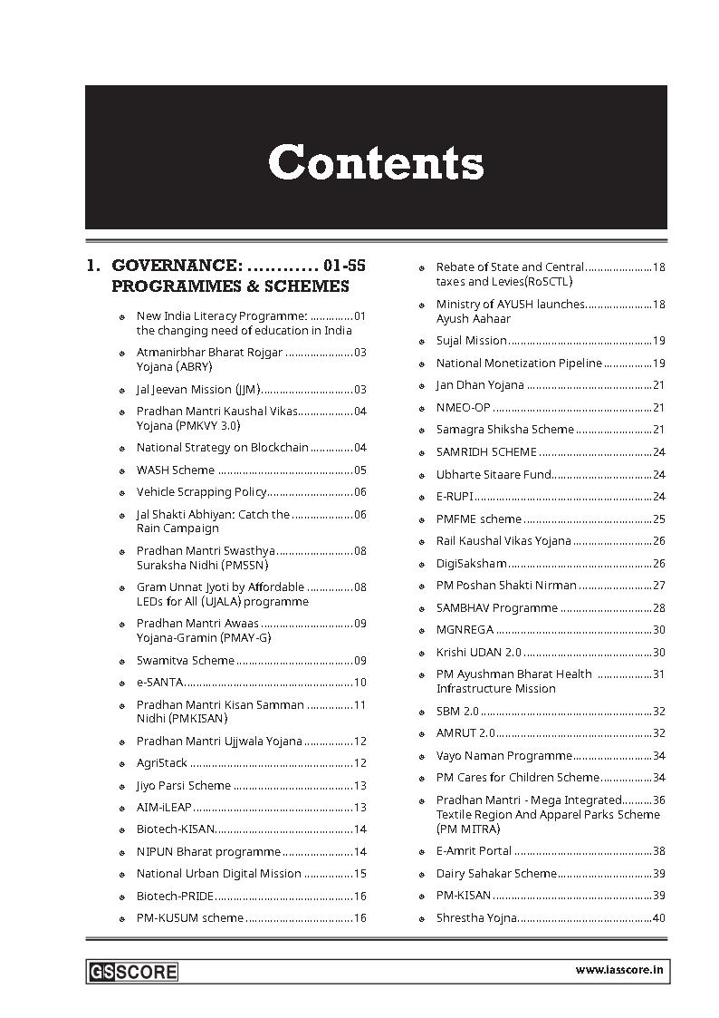 GS Score Yearly Compilation Prelims Sampoorna Current Affairs Governance: Programmes & Schemes Jan 2021-Feb 2022 Printed Notes English Medium