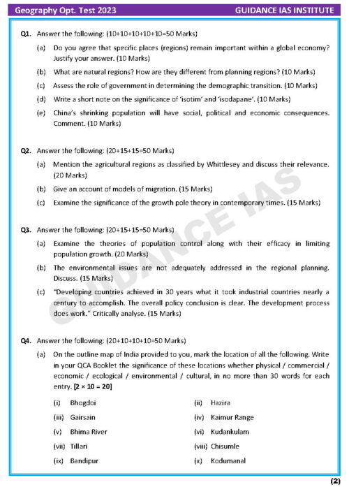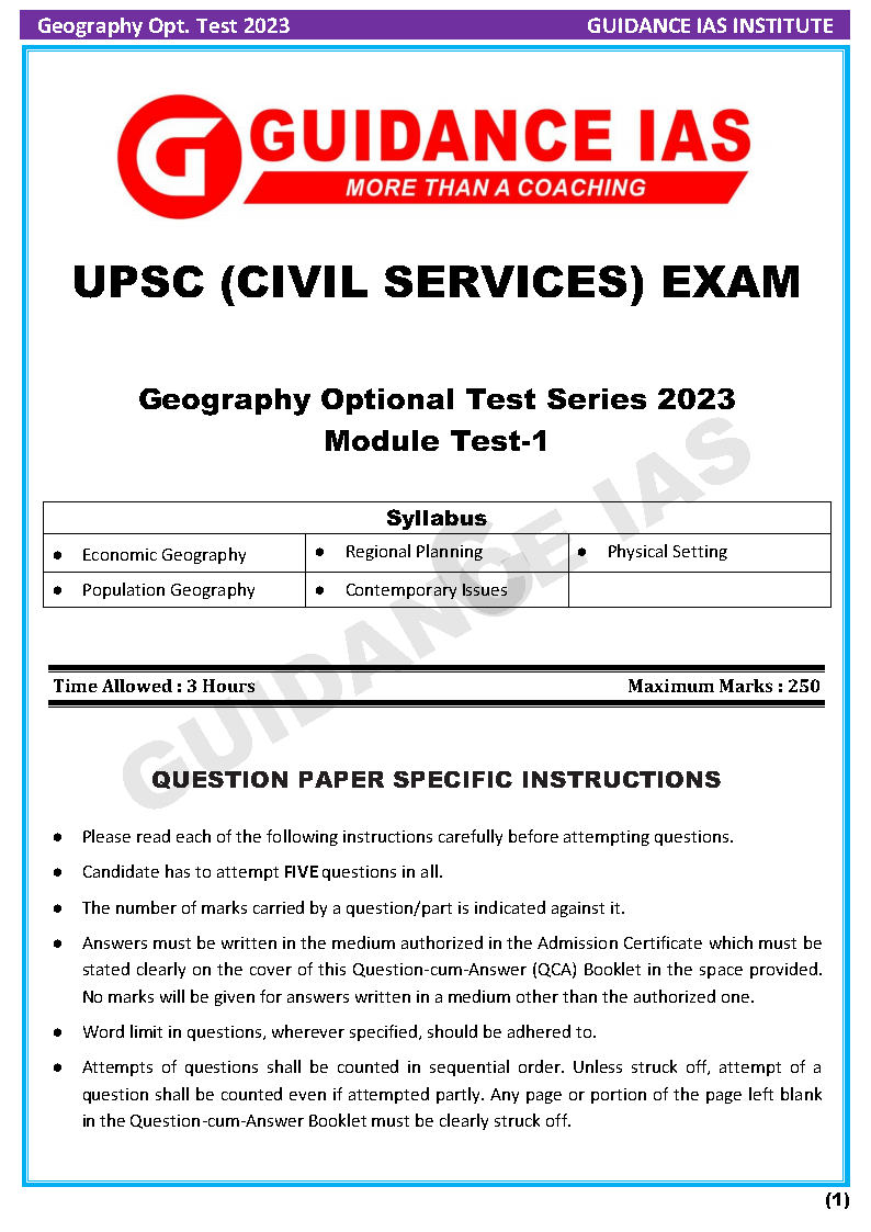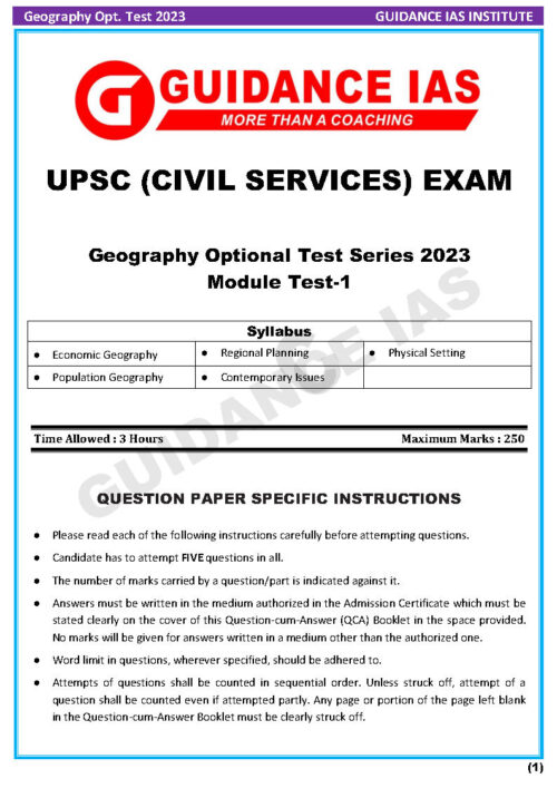 Guidance Ias Geography Optional Test Series 01 To 04 Questions With Solutions By Himanshu Sir English Medium 2023