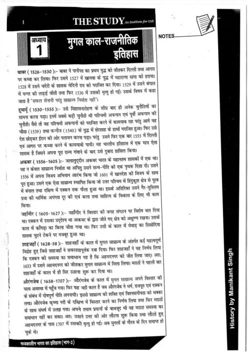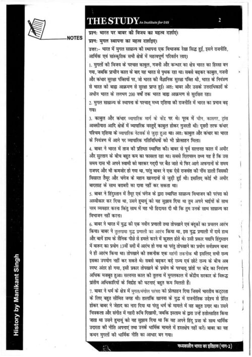 The Study History Optional By Manikant Printed Notes 2025 Hindi Medium