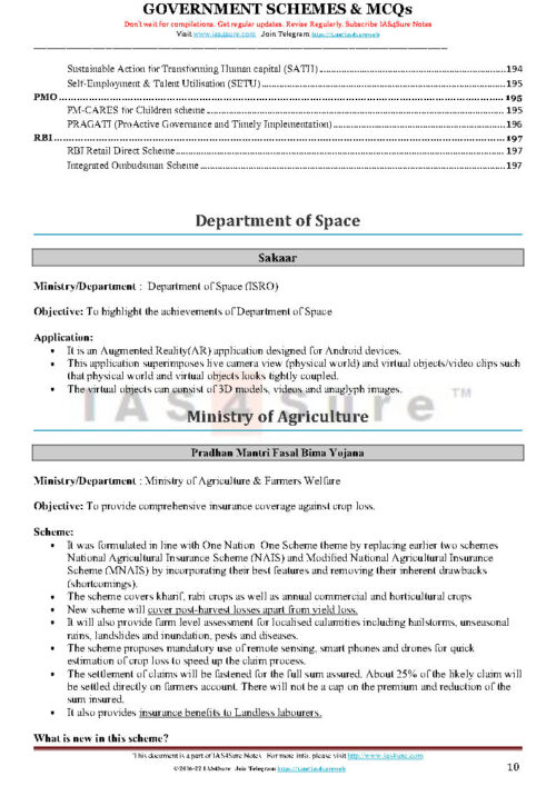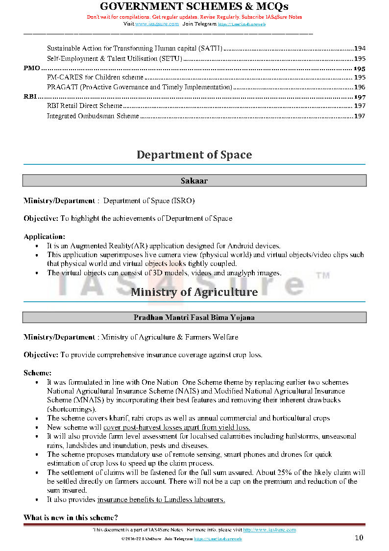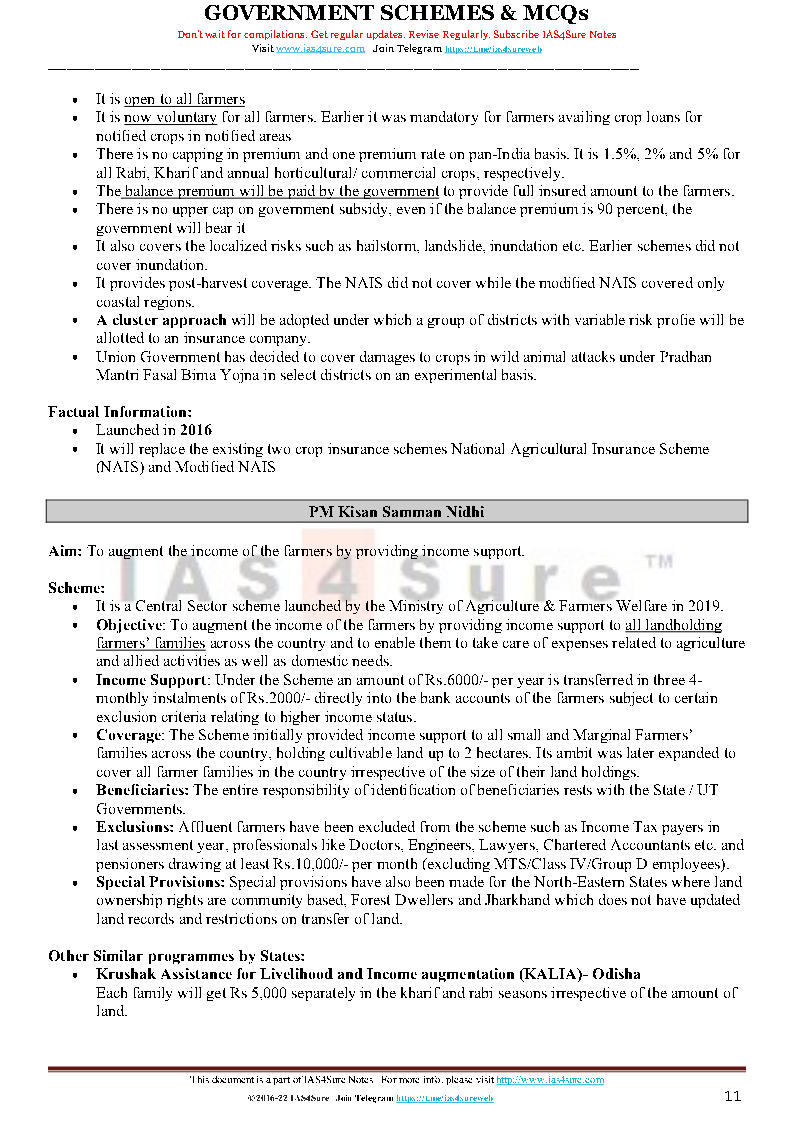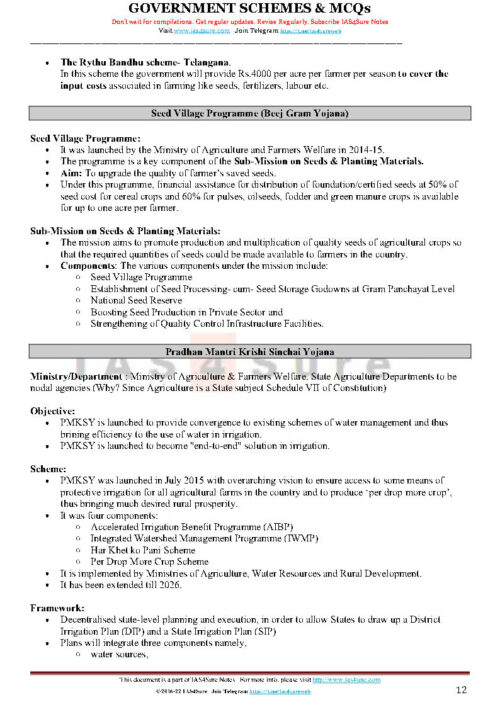 IAS 4 Sure Government Schemes Revision Notes For Prelims English Medium 2022