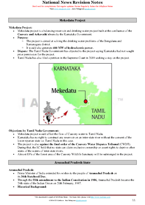 IAS 4 Sure National News Revision Notes For Prelims English Medium 2022