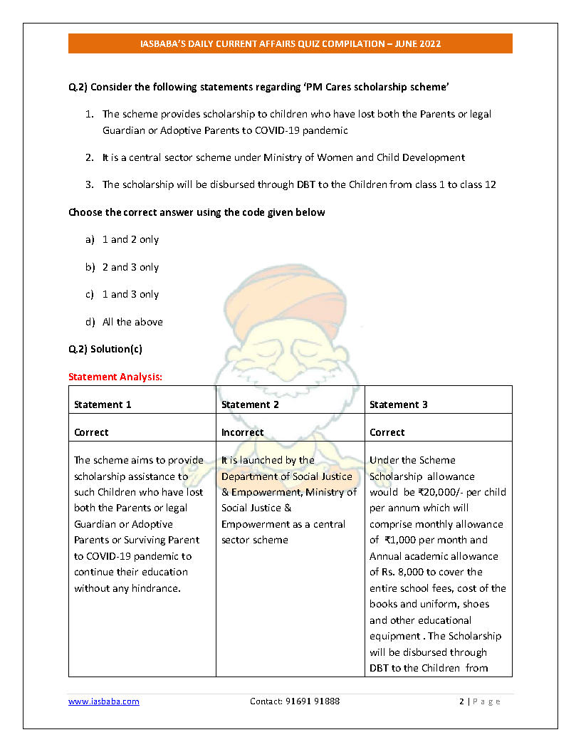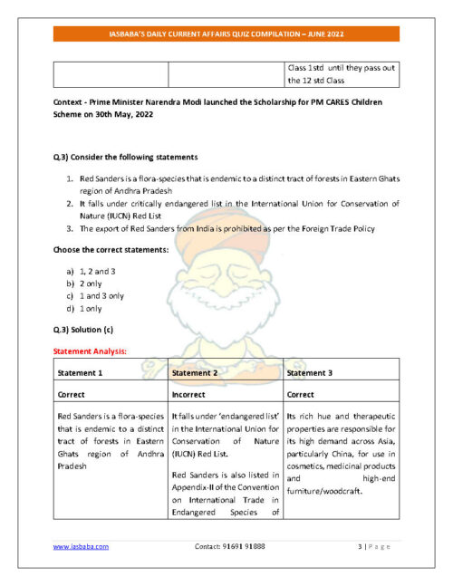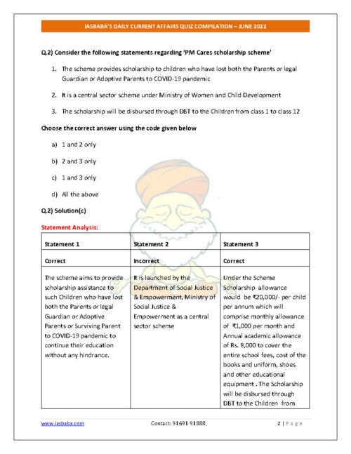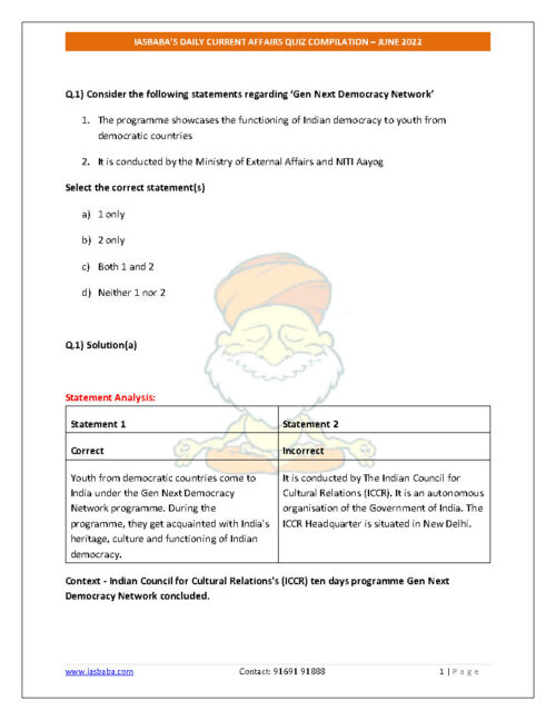 IAS Baba’s Daily Current Affairs Quiz Compilation UPSC June 2022 English Medium
