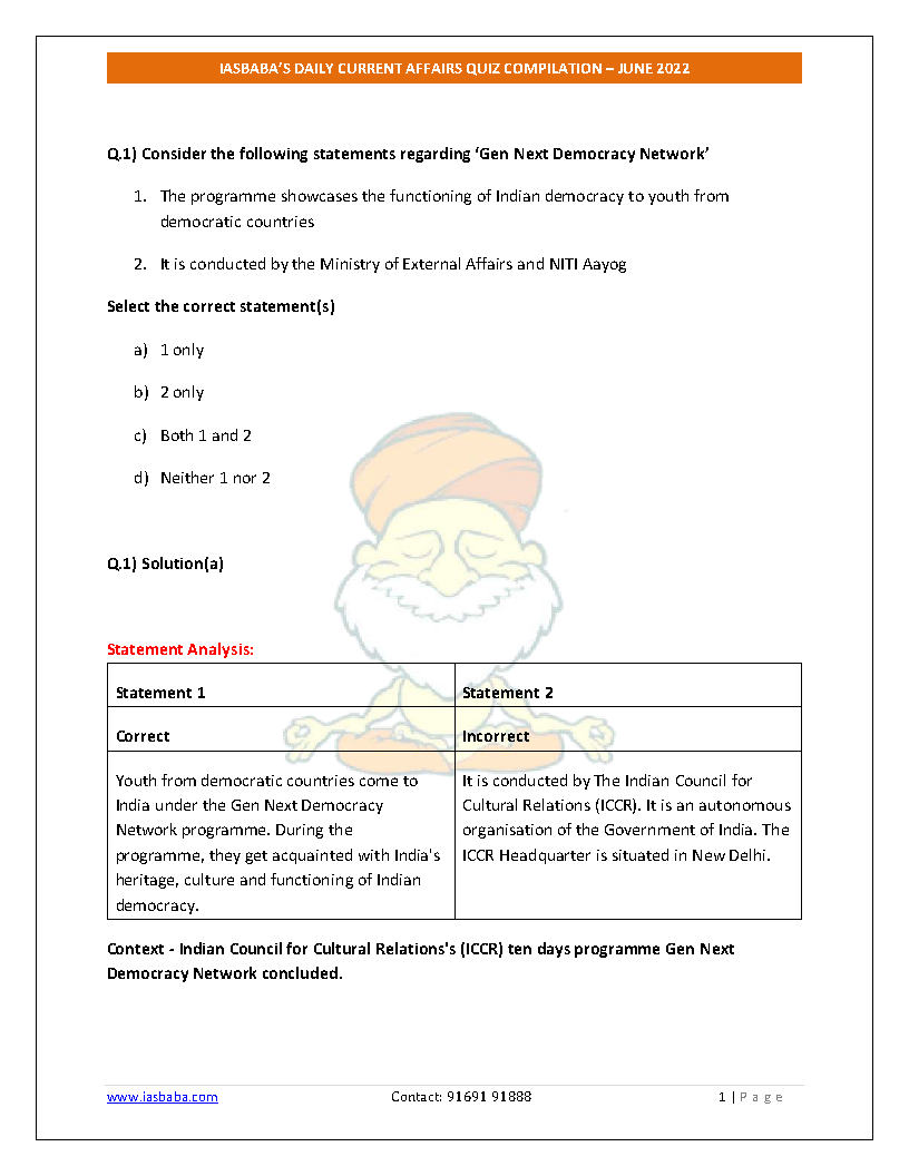 SKU: IAS Baba's Daily Current Affairs Quiz June 2022