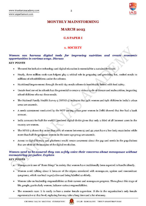 Ias Parliament Monthly Mainstorming March 2023 Printed Notes English Medium
