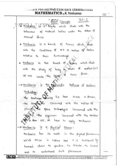 IMS Maths Mathematics Optional Notes For IAS Printed Notes Class Notes By Venknna Sir 2020-21 Edition