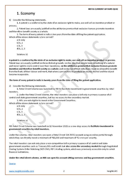 Insight IAS Insta Current Affairs Quiz March 2022 Printed Notes English Medium