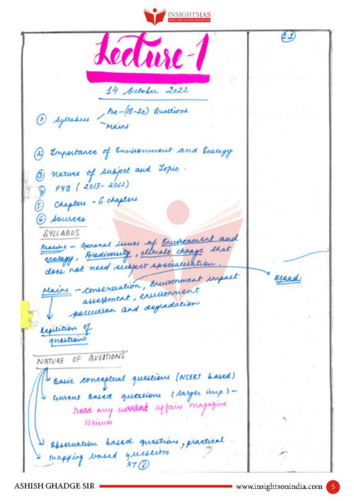 Insights IAS Environment & Ecology Classroom Handwritten Notes Integration Foundation Program By Ashish Sir English Medium 2023