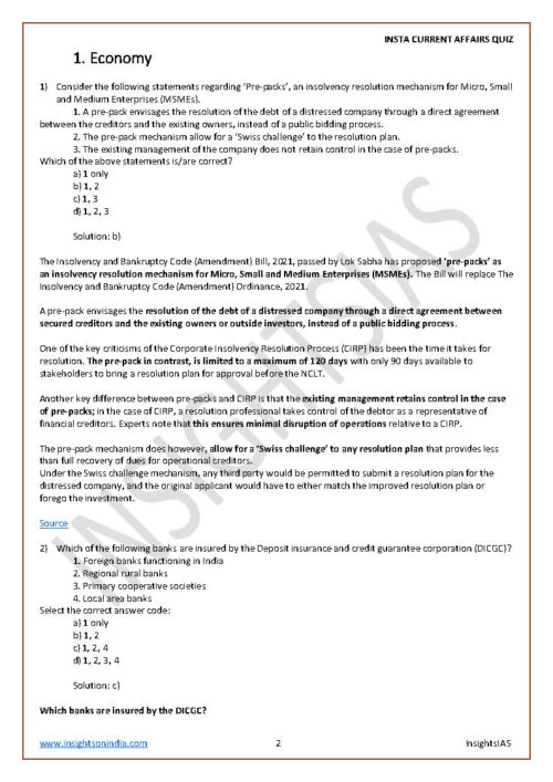 Insights IAS Insta Current Affairs Quiz Monthly Compilation August 2021 Printed Notes English Medium