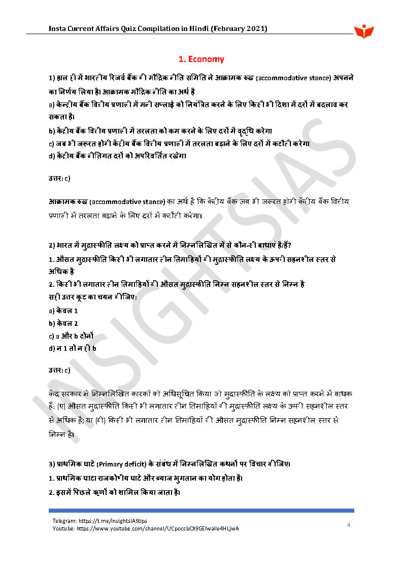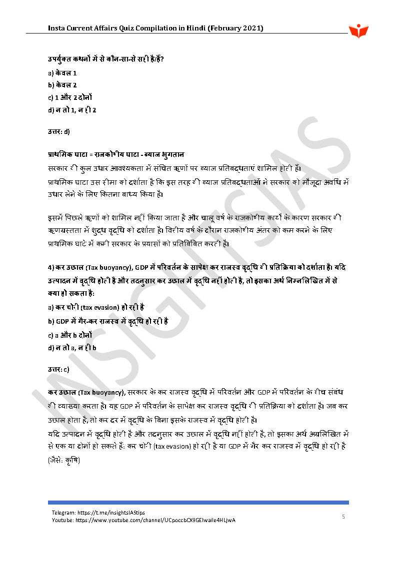 Insights IAS Insta Current Affairs Quiz Monthly Compilation Feburary 2021 Printed Notes Hindi Medium