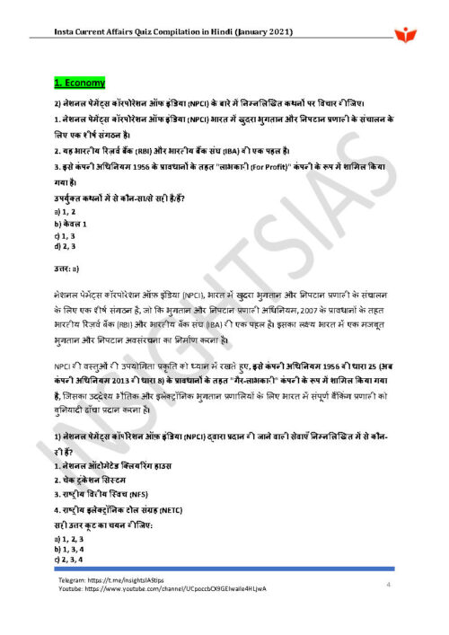 Insights IAS Insta Current Affairs Quiz Monthly Compilation January 2021 Printed Notes Hindi Medium