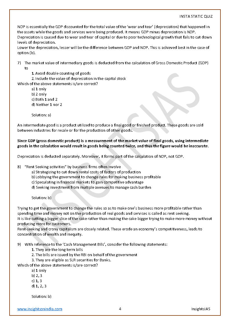 Insights IAS Insta Static Quiz Monthly Compilation April 2021 Printed Notes English Medium